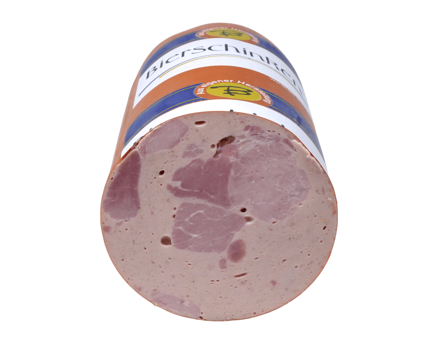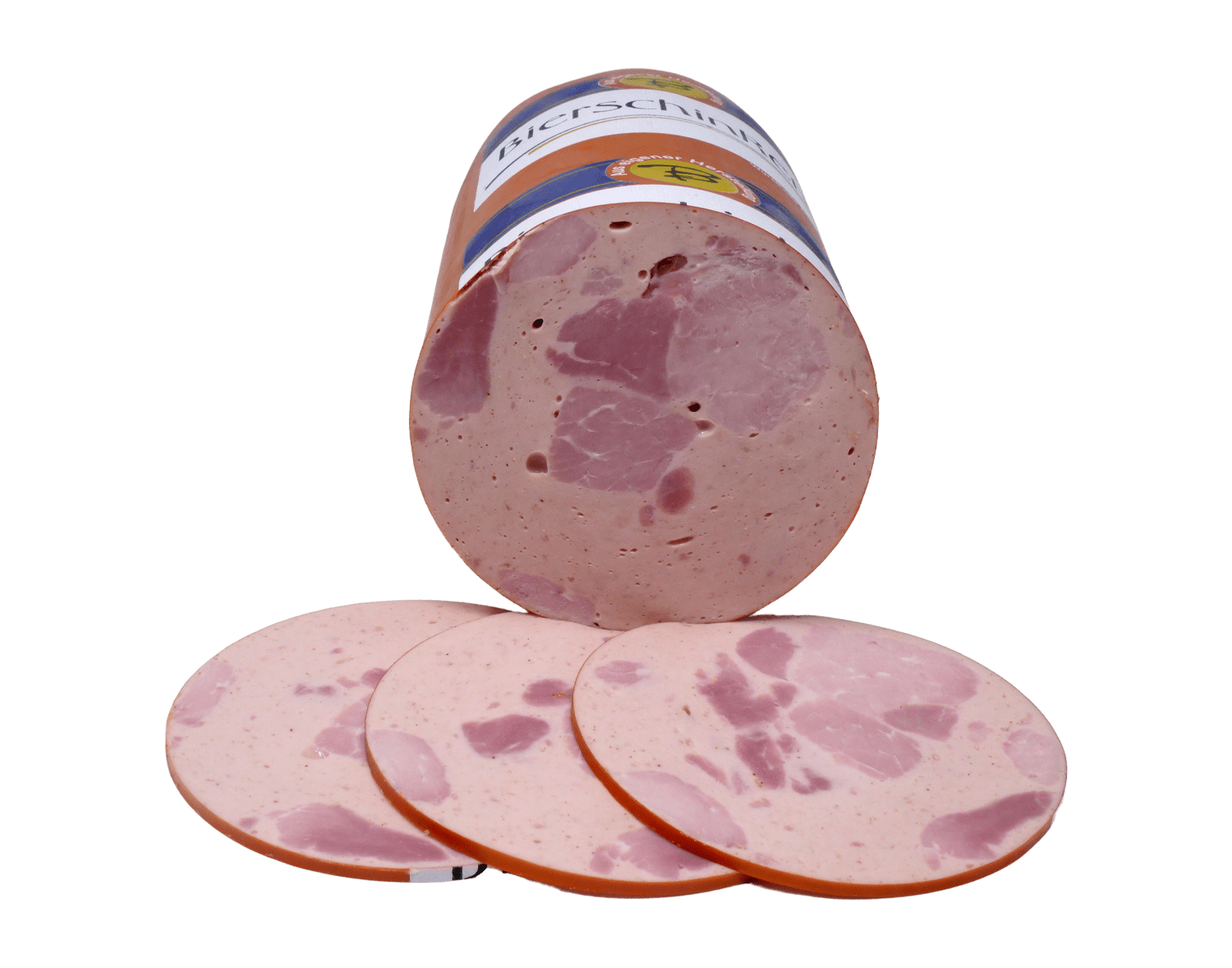 Bierschinken ist eine Wurstspezialität, die nicht etwa aus Bier besteht, sondern aus Schweinefleisch-Brät in Kombination mit zarten, gepökelten Fleischeinlagen vom Hinterschinken: Sie wird deshalb auch als Schinkenwurst bezeichnet. Die schmackhafte Brühwurst sollte zu keiner Brotzeit fehlen und schmeckt zu einem würzigen Bier.