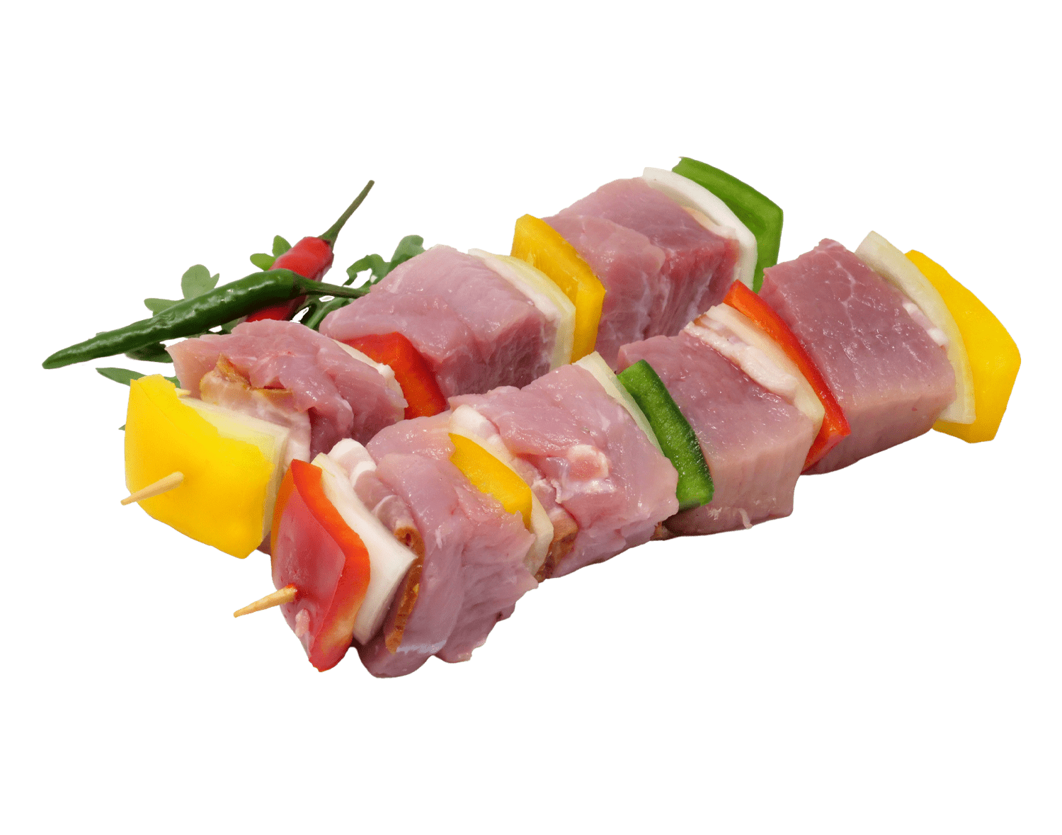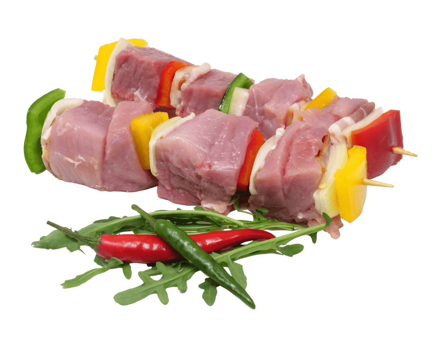 Schaschlik-Spieße sind eine beliebte Ergänzung für Gerichte mit Reis, Bratkartoffeln oder “nur” für ein frisches Brötchen. Unsere Spieße bestehen aus ausgesuchtem, mundgerecht gewürfeltem mageren Schweinefleisch aus dem Rücken. Als Beigaben verwenden wir rote und gelbe Paprika sowie Bauchspeck und Zwiebel. Eine rauchig-aromatische Marinade rundet die Spieße ab. Sie schmecken gegrillt, aber auch in der Pfanne gebraten.