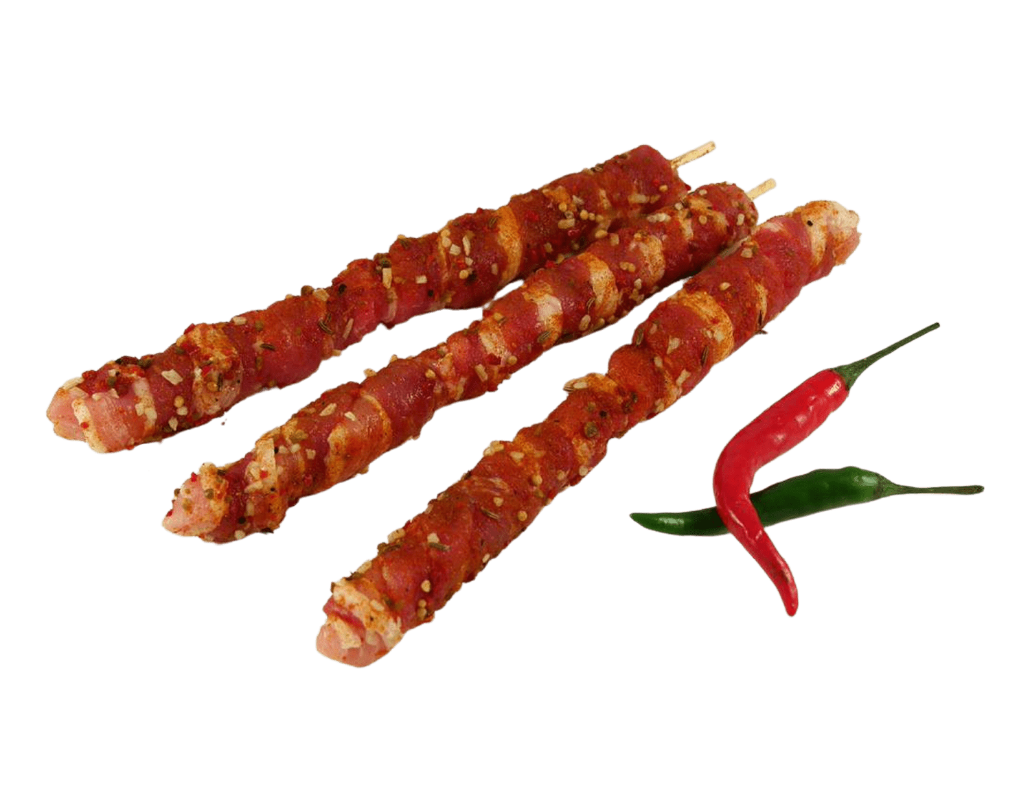 Der Schweinebauch gehört zweifelsohne zu den „must haves“ einer gelungenen Grillparty. Das Fleisch ist aufgrund des hohen Fettanteils von bis zu 30% in Sachen Aroma und Saftigkeit nicht zu toppen. Zudem nimmt es die Marinaden und Würzungen sehr gut auf und gibt sie in voller Intensität im Geschmack wieder. Bei unseren Grillfackeln wickeln wir den gewürzten Schweinebauch um Holzspieße, damit er sich leicht wenden lässt und rundherum kross und knusprig gegrillt werden kann.