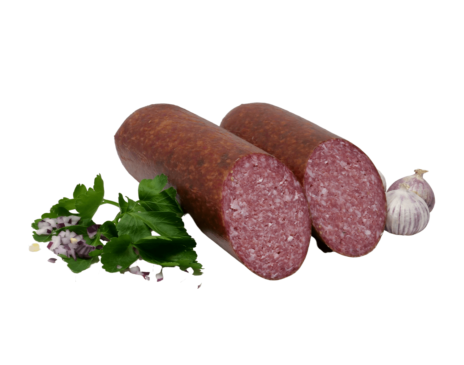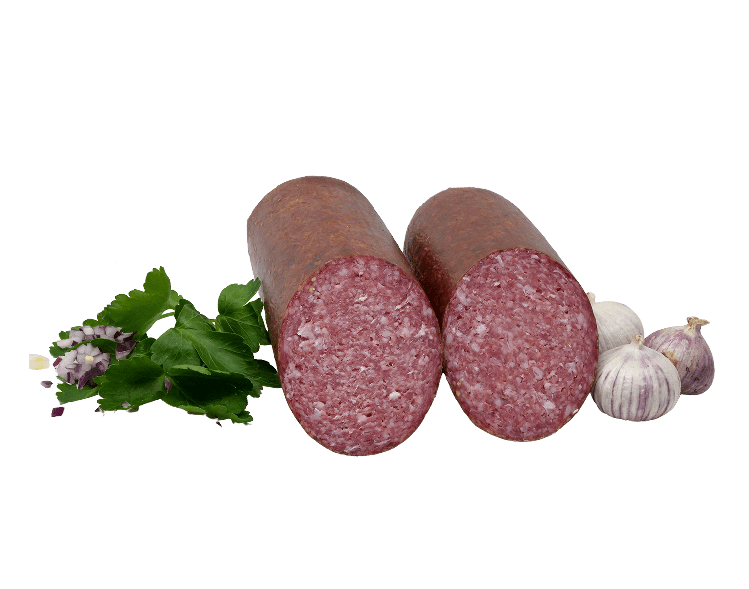 Unsere hausmacher Cervelatwurst wird mit einer feinen Gewürzmischung versehen und in Kunstdärmen abgefüllt. Danach wird die aus feinkörnigem Schweine- und Rindfleisch hergestellte Rohwurst bis zu sechs Tage einem Reifeprozess unterzogen. Sie eignet sich bestens als pikanter Aufschnitt und auch als Beilage für Salate oder in Kombination zu Hauptgerichten.