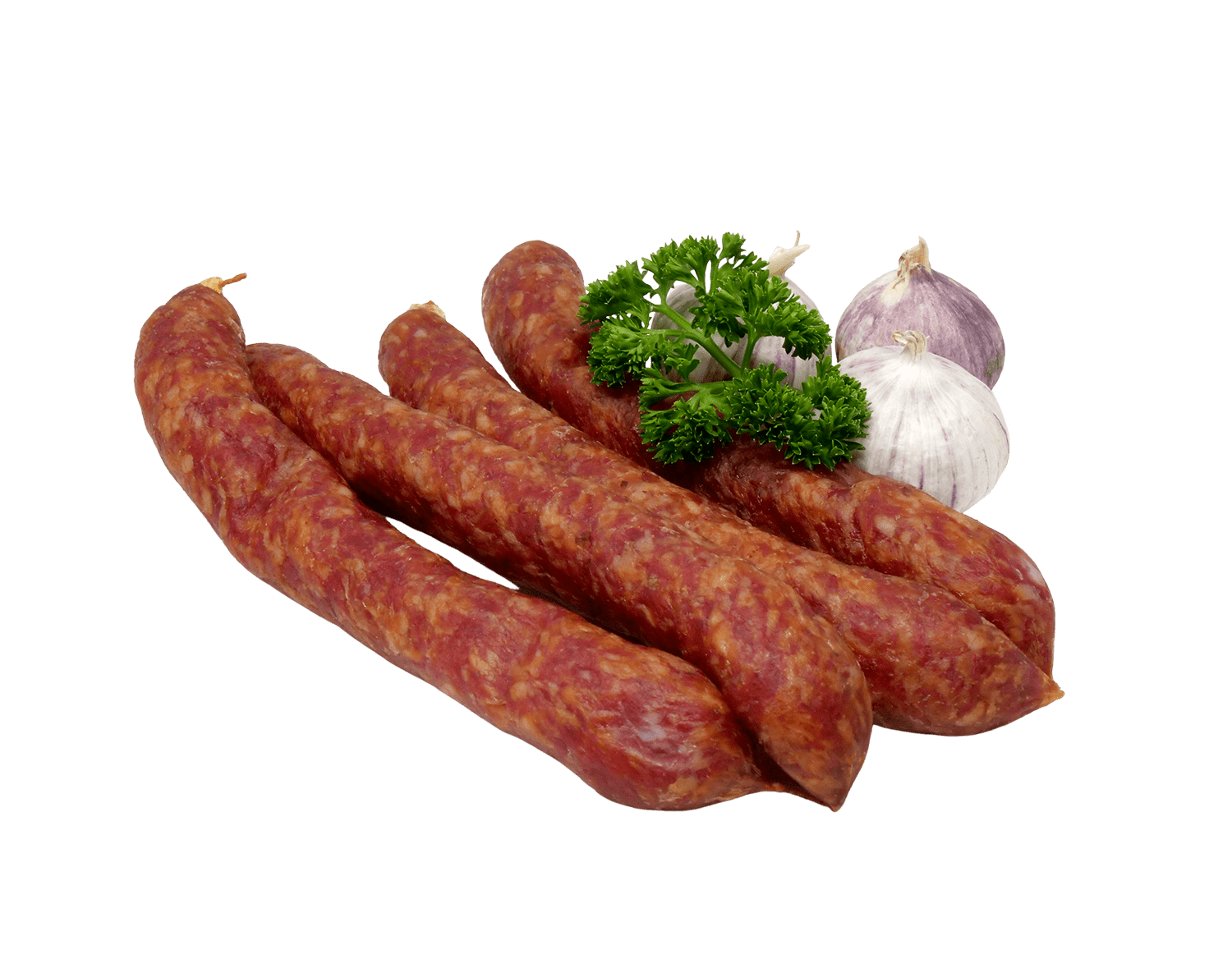 Eine leichte Knoblauch-Note verleiht diesem Würstchen seinen Namen und ist etwas für Freunde des deftigen Essens. Knackig im Biss entsteht nach der Lufttrocknung eine deftige Wurst mit ausgeprägt pikanter Note, die sich bestens als Proviant oder auf Brötchen verwenden lässt.