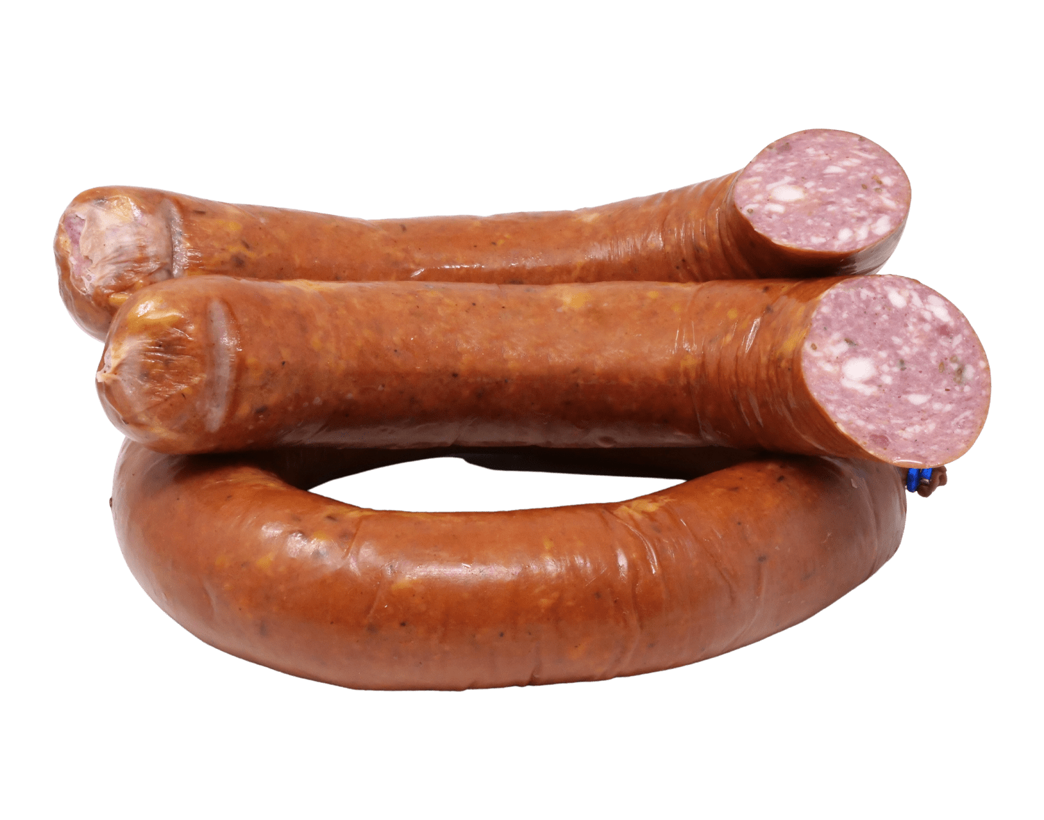 Diese Brühwurst stellen wir aus einer Fleischeinlage von ausgesuchtem, grob gewolftem Schweinefleisch her. Die auch als Kochkrakauer bezeichnete Wurst wird unter anderem mit Pfeffer, Paprikapulver, Muskat und Knoblauch gewürzt und im Kunstdarm abgefüllt. Sie wird dann heißgeräuchert und schließlich gebrüht. Sie passt trefflich als Brotbelag zu einer deftigen Vesper, aber auch in Verbindung mit Kartoffelsalat.