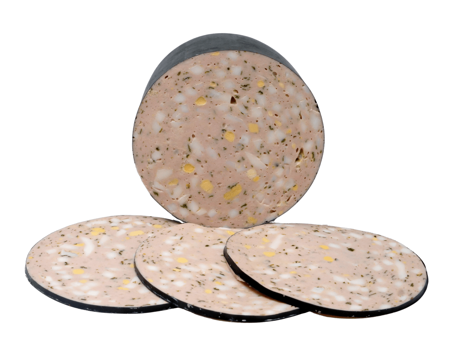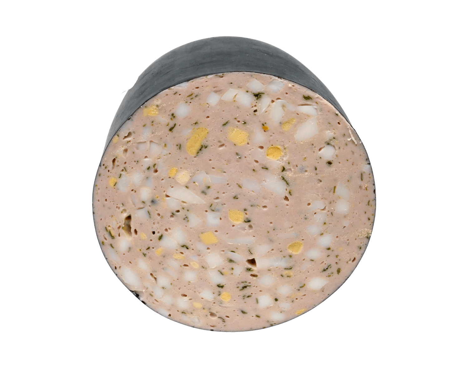 Diese Variante der Mortadella wurde mit stückigem Ei angereichert. Sie erhalten so eine sehr feine pikante, schnittfeste Wurst, die sich trefflich als Aufschnitt, aber auch im Stück für eine deftige Brotzeit daheim und unterwegs eignet.