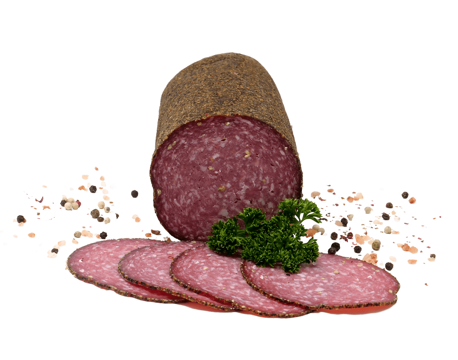 Die mit einer speziellen Gewürzmischung abgeschmeckte Rohwurst aus Schweine- und Rindfleisch ist von einer pikanten Pfefferkruste umhüllt. Die schnittfeste Wurst eignet sich als herzhafter Brotbelag und ist schmackhafter Bestandteil rustikaler Buffets.