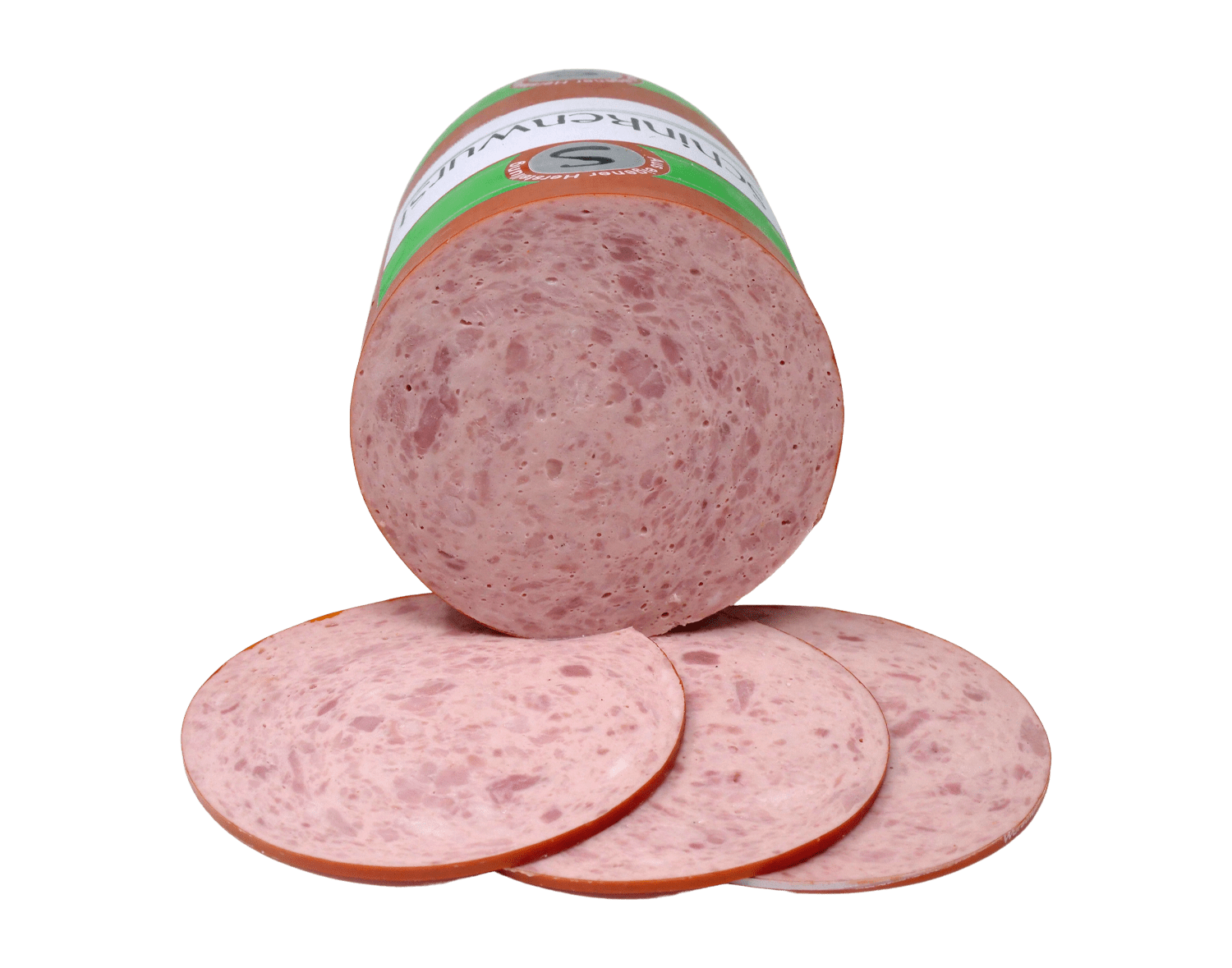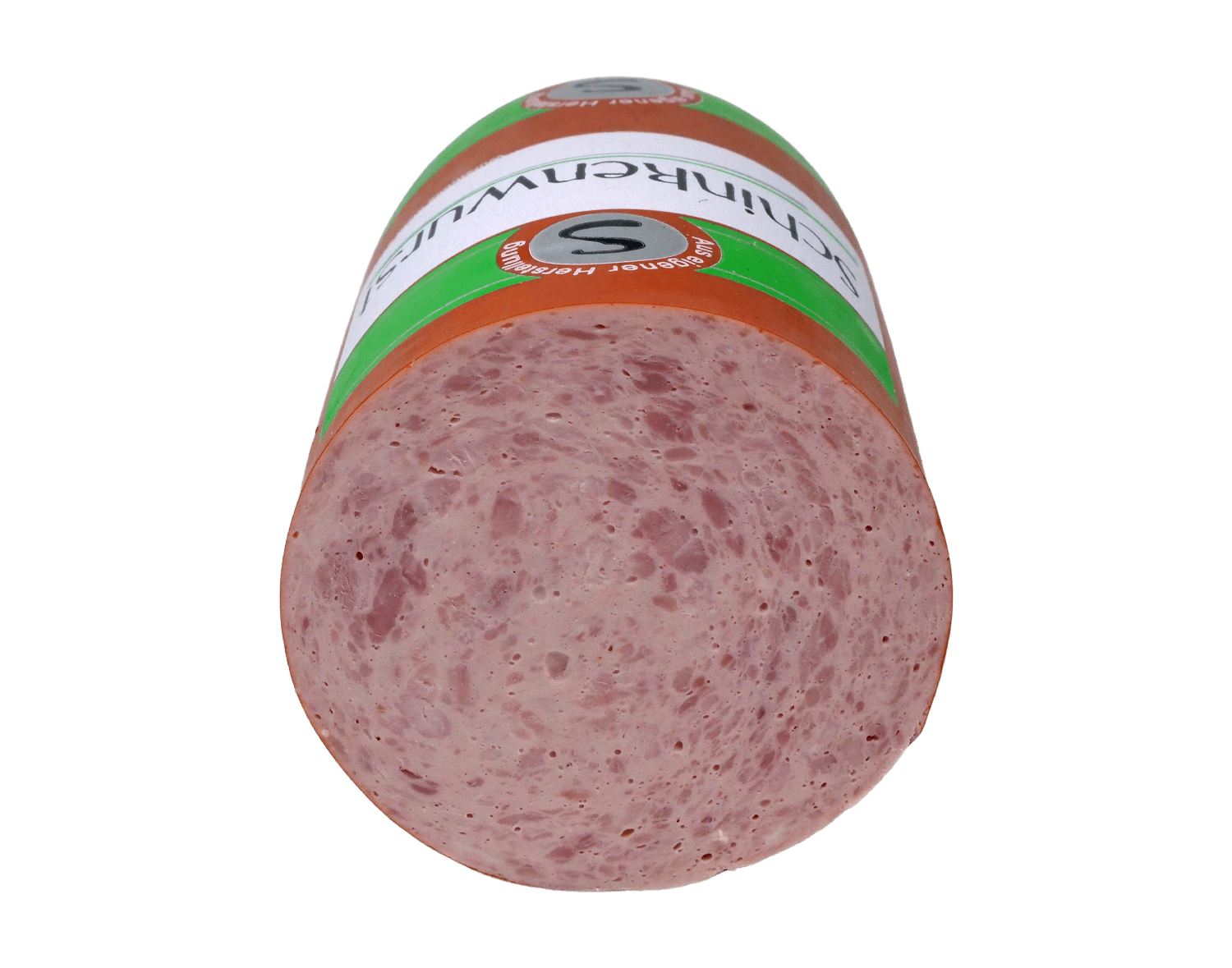 Die Brühwurst zeichnet sich durch feine Schinkenstückchen als Einlage in feinem Brät aus. Sie wird aus frischem Schinkenfleisch vom Schwein hergestellt, das mit ausgesuchten Gewürzen vermischt ist. Sie erhalten so eine sehr feine pikante, schnittfeste Wurst, die sich trefflich als Aufschnitt eignet.