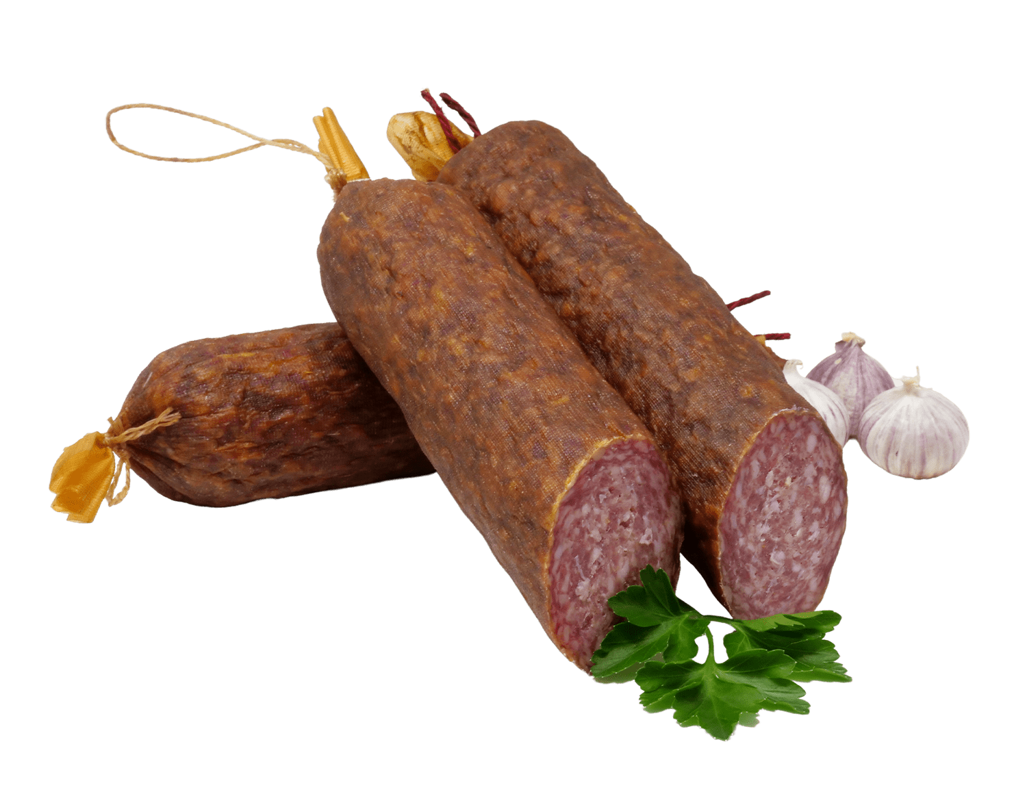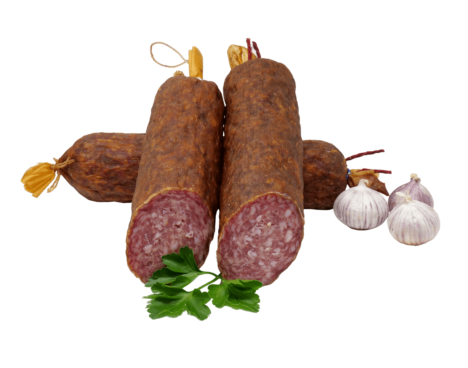 Unsere Stracke besteht aus Schweine- und Rind, verfeinert mit sorgfältig ausgewählten Gewürzen und nach alter Tradition, wie früher bei der Hausschlachtung, hergestellt. Anschließend wird die Schmitter Stracke vier Wochen lang in Reiferäumen gereift und mild geräuchert.