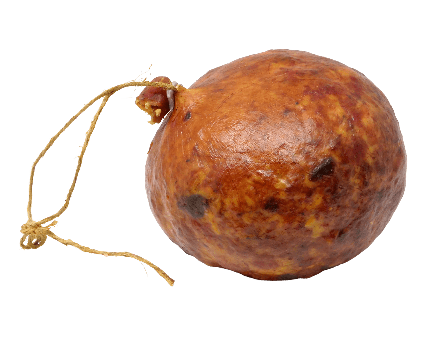 Schwartemagen in der Blase ist eine Brühwurstspezialität mit grober Einlage aus Schweineschwarte und Naturgewürzen. Zusammen mit grob gewolftem Schweinefleisch wird daraus durch Pressen und Räuchern ein herzhafter Aufschnitt, den wir Ihnen hier im Ganzen anbieten.