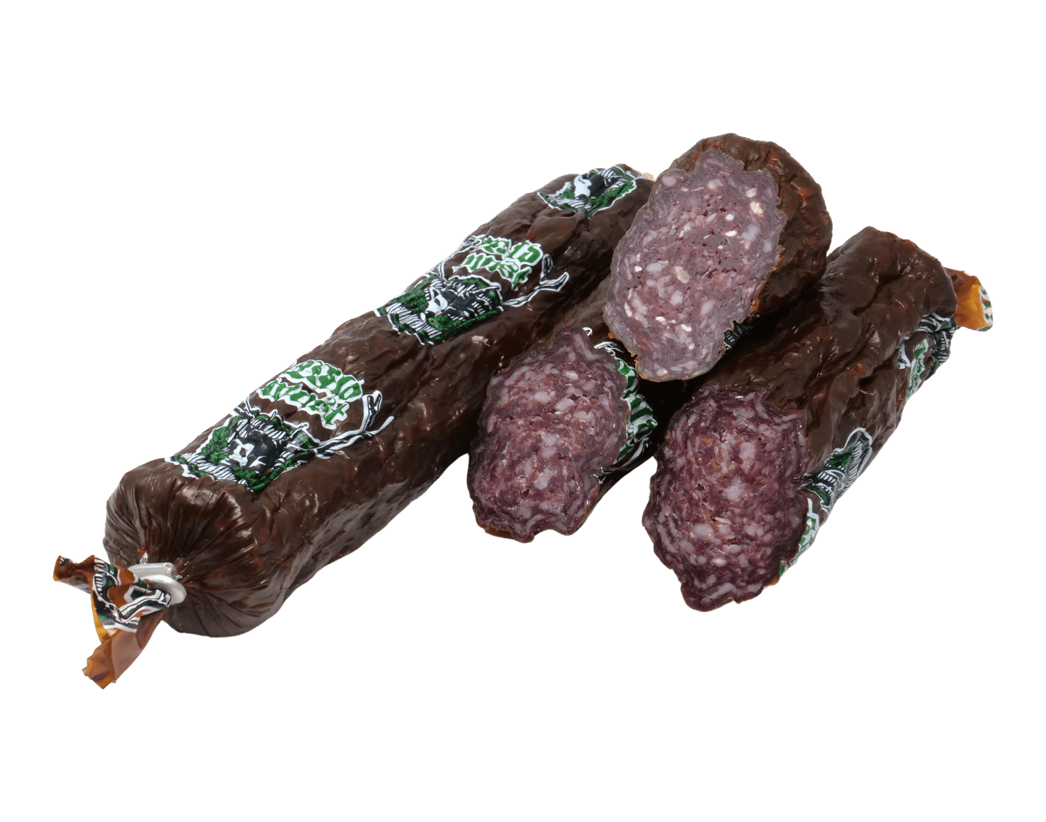 Eine Besonderheit in Geschmack ist diese Salami, die wir aus grob gewolftem Wildschwein-, Reh- und Schweinefleisch herstellen. Die geräucherte und luftgetrocknete Wurst ist pikant gewürzt. Sie sollte zu keiner deftigen Brotzeit fehlen, schmeckt in Verbindung mit Käse, Baguette und einem guten Rotwein auch als pikanter Snack am Abend.